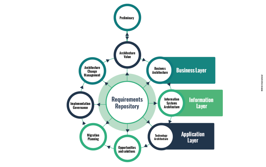 TOGAF is currently in its 10th Edition, but the ADM, or Architecture Development Model, is the most widely recognizable feature of The Open Group’s TOGAF. This model uses a cyclical approach to the development of architecture.
